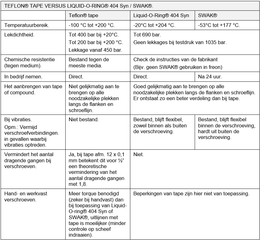 - Direct in bedrijf nemen bij gebruik van Liquid-O-Ring® 404 Syn: Als Liquid-O-Ring® 404 Syn is gebruikt, kan het systeem direct in bedrijf worden genomen. Deze pasta heeft geen uithardingstijd nodig en kan direct effectief zijn.