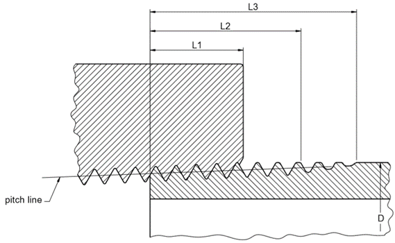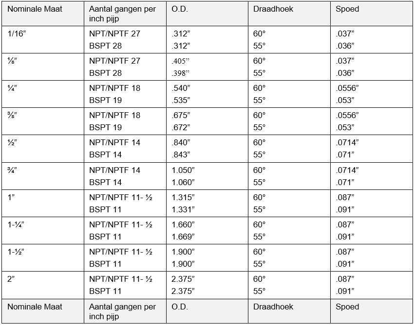 Voor schroefdraadverbindingen met API of NPT-pijpschroefdraad, is het belangrijk om de juiste inschroefdieptes te hanteren. Raadpleeg de specificaties en richtlijnen van de fabrikant of de toepasselijke normen voor de aanbevolen inschroefdieptes voor verschillende pijpdiameters (van 1/8 inch tot 1 inch). Het correct toepassen van de juiste inschroefdieptes zorgt voor een goede passing en afdichting van de schroefdraadverbinding.