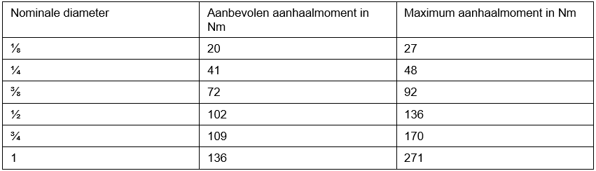 Na het in bedrijf nemen van de schroefdraadverbinding, dienen de volgende stappen te worden gevolgd: