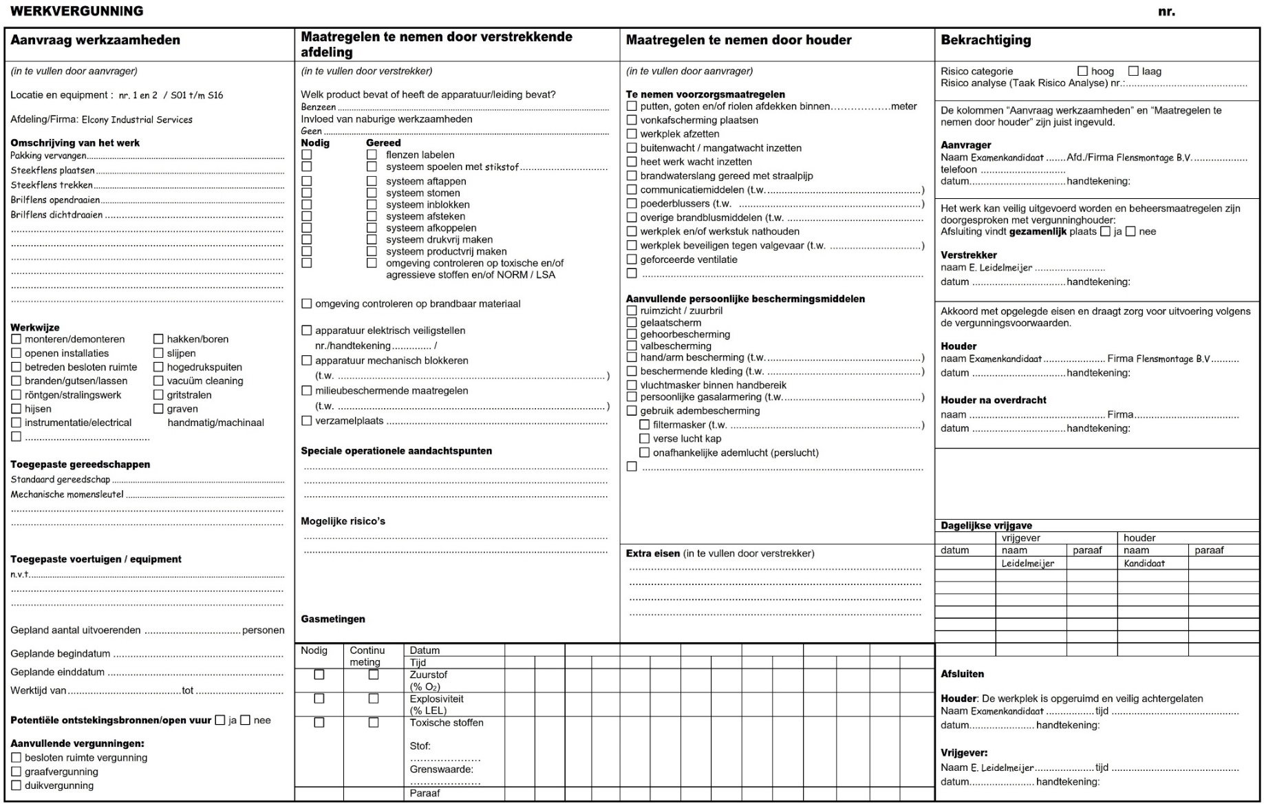 Het uitvoeren van werkzaamheden aan installaties vindt voornamelijk plaats op raffinaderijen en chemische fabrieken. De producten die hier worden vervaardigd, kunnen gevaar opleveren voor onze collega’s, het milieu en het bedrijf als er ondeskundig wordt gehandeld. Daarom is het een vereiste dat er veilig en volgens de voorschriften wordt gewerkt.