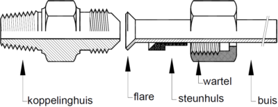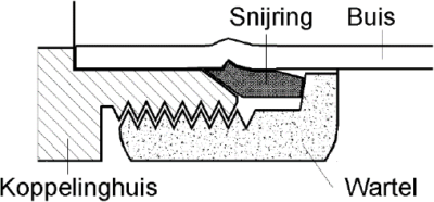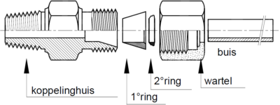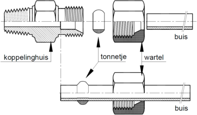 Voor het aanzetten van de koppeling geven de verschillende fabrikanten instructies zoals na handvast of vingervast aanzetten nog 1¼ slag aandraaien met sleutels. Bij een buisdiameter kleiner dan 6 mm ¾ slag met sleutels na handvast aanzetten.