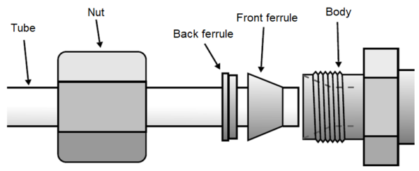 Allereerst wordt de buis afgetekend met een fijnschrijver, gebruikmakend van een Voor-afteken-blok (Gyrolok Marking Tool GMT). De afgetekende buis wordt vervolgens in de fitting gestoken, waarbij ervoor gezorgd moet worden dat de tubing op de maximale diepte in de fitting zit. Rondom wordt de fitting gemarkeerd met een fijnschrijver.
