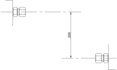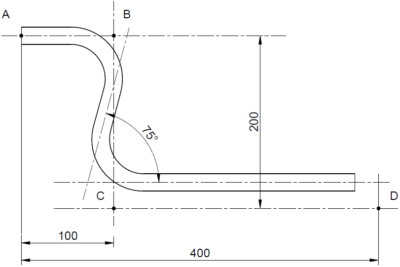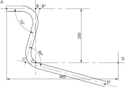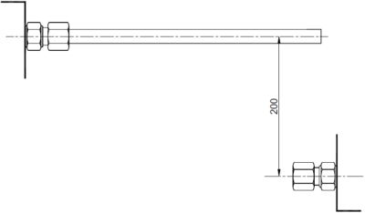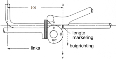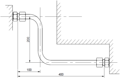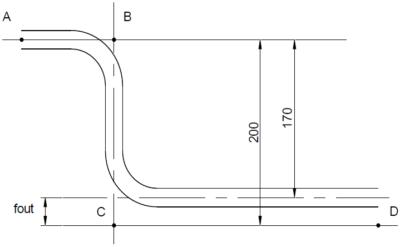 Als de afstanden in het voorbeeld te klein zijn om het buisstuk te kunnen monteren, kan de volgende aanpak worden gevolgd.