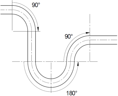 Vermijd onnodige weerstand door de bochten niet onder een te scherpe hoek te laten lopen.