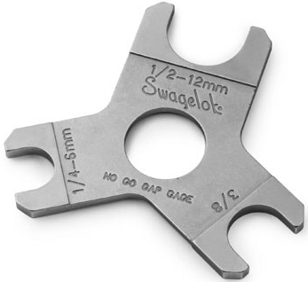 Achteraf kan de montage altijd worden gecontroleerd op juistheid met behulp van een Swagelok Gap Inspection Gage. Deze inspectiemal, bestaande uit een plaatje met een uitsparing, wordt gebruikt om de afstand tussen het koppelinghuis en de wartelmoer te controleren. Op die manier kan de montage nauwkeurig worden gecontroleerd.